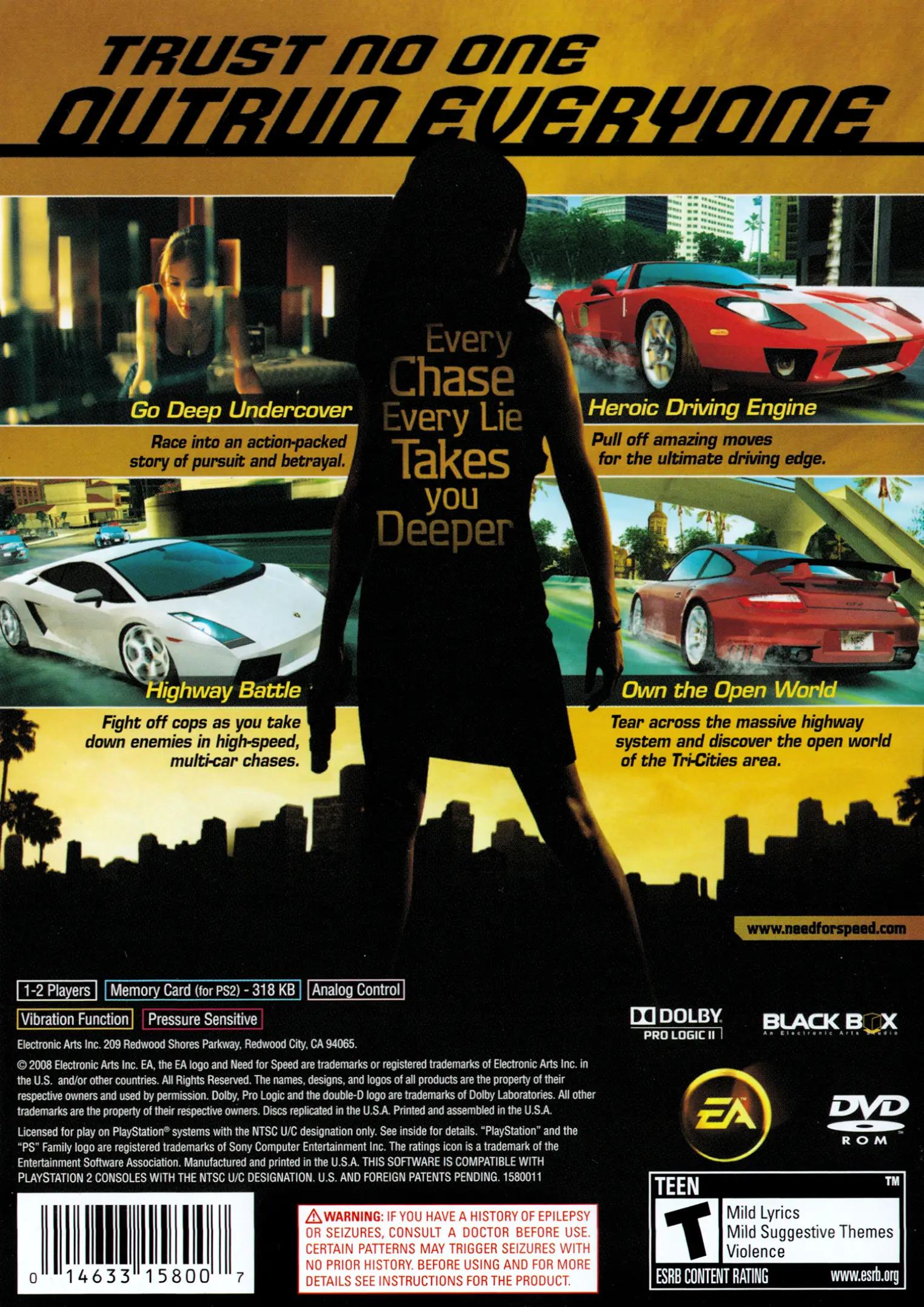 Need for Speed: Undercover is the twelfth installment in the popular racing video game series Need for Speed, developed by EA Black Box and published by Electronic Arts (EA). It was released on PlayStation 2, PlayStation 3, Xbox 360, Wii, Microsoft Windows, PlayStation Portable, Nintendo DS,[5] and mobile phone platforms in November 2008.[6][7][8] The game was later released on the iOS on April 27, 2009. According to EA, the game has sold over 5.2 million copies on all 8 platforms combined.[9]