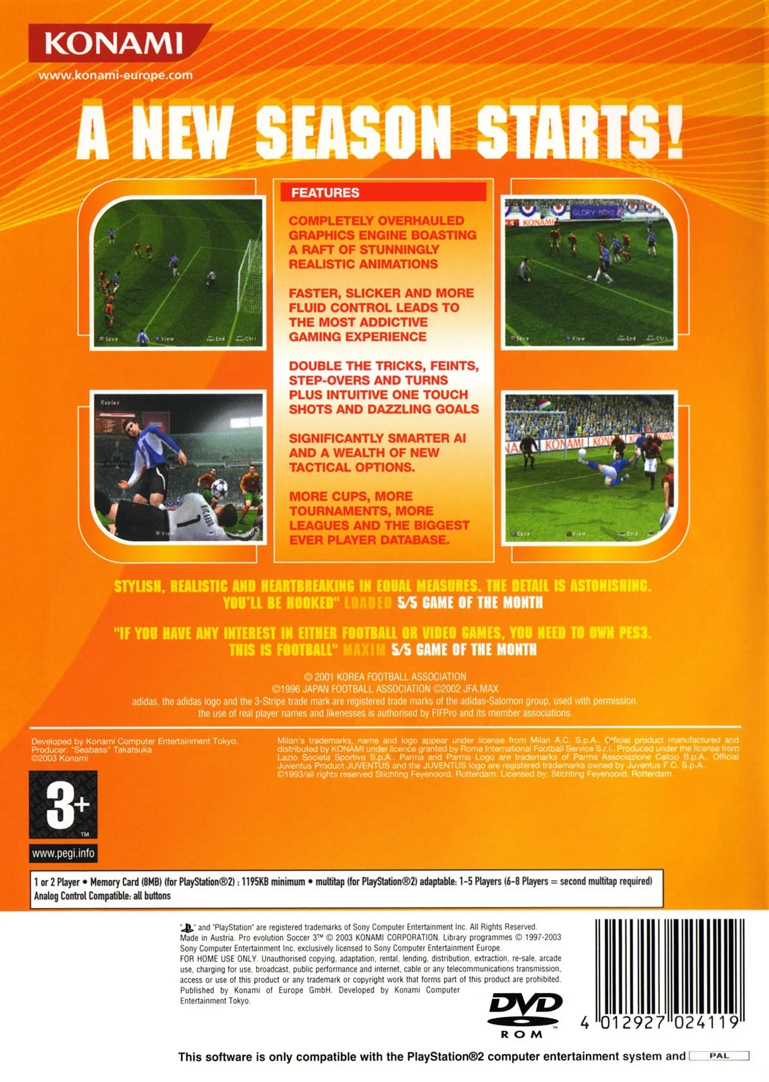 Pro Evolution Soccer 3 is the European revision of the Japanese World Soccer Winning Eleven 7.