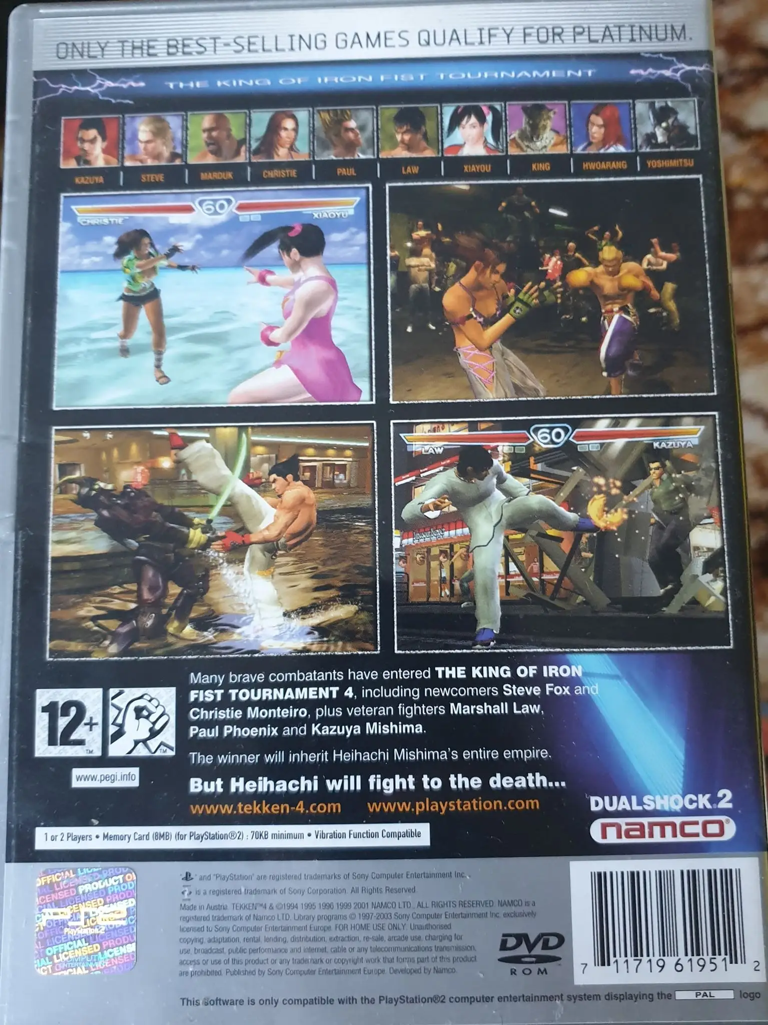Tekken 4 (鉄拳4) is a 2001 fighting video game developed and published by Namco as the fifth main installment in the Tekken series, following the non-canonical release of Tekken Tag Tournament in 1999. It was released as an arcade game in 2001 and on the PlayStation 2 in 2002.