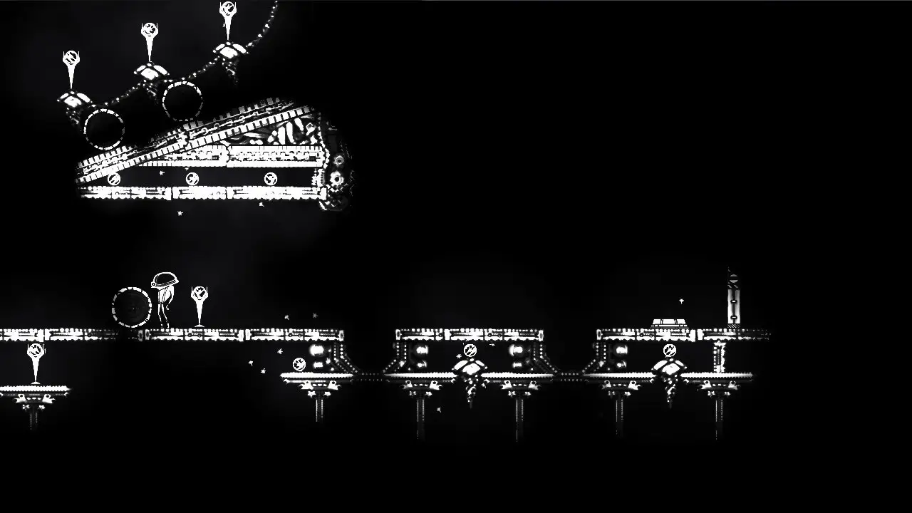 Closure is a puzzle/platformer title that centers around the concept of light. Through each of the many levels, the goal is to reach the door at the end. Lighting is a key gameplay mechanic, as only platforms and walls illuminated by lightbulbs, or orbs of light the player can carry can actually be touched by the player. The player has to make use of the light source and light orbs in order to get through the area without falling off the bottom.