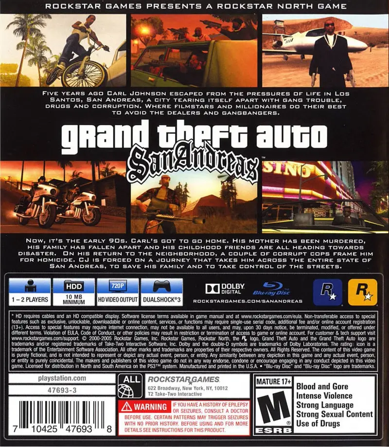 Five years ago Carl Johnson escaped from the pressures of life in Los Santos, San Andreas… a city tearing itself apart with gang trouble, drugs and corruption. Where filmstars and millionaires do their best to avoid the dealers and gangbangers.