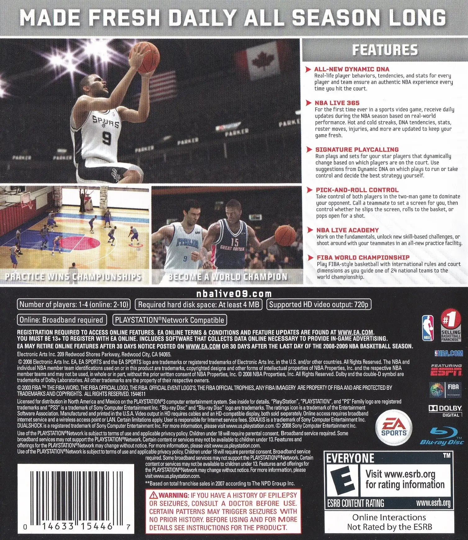 NBA Live 09 is back with new features like Pick and Roll Control, Defensive Lockdown Control, Signature Playcalling and Quickstrike Ankle-Breakers. For those in need of some extra coaching, NBA Live 09 takes you to training camp with the NBA Academy that gives you a chance to hone your skills. Now featuring 24 authentic FIBA teams with realistic team play styles and rosters, NBA Live 09 features a FIBA World Championship Mode using FIBA tournament structure, rules and court dimensions. Take your game online with 5 vs.5 team play, where 10 people can play together on 10 different consoles around the world.