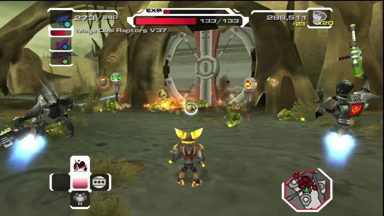 In Ratchet: Deadlocked, Ratchet and Clank are captured and forced to compete on an underground reality combat sport show. The show, which features abducted heroes fighting for their lives against a gruesome gang of deadly Exterminators, is run by a deranged media mogul named Gleeman Vox, who intends to use Ratchet and Clank as his next contestants. It doesn't take Vox long to realize that Ratchet is the most promising contestant the show has ever seen. Vox subjects our hero to a series of deadly battles and elaborate games of death, much to the delight of the show's enormous audience. To keep himself and his friends alive, Ratchet has no choice but to participate in the games and keep driving up the show's ratings with spectacular victories — at least until our heroes can figure out a way to break free from Vox's control, the explosive Deadlock collar fastened to his neck, and bring the mighty Vox Network crashing down. Ratchet: Deadlocked features non-linear gameplay, allowing players greater freedom to choose their missions. In addition, all single-player levels will be available for multiplayer use. With much of the combat taking place in battlefields and arenas, gameplay will be more sports-oriented and will include announcer commentary. Featuring a new mission-structure approach, players will be rewarded with a constant progression of items such as weapons, armor and health. Players can take advantage of the new co-op gameplay functionality available throughout the game by choosing either single-player or multiplayer story mode. In addition, squad-based gameplay will enable players to demolish the competition by commandeering their allied combat bots through critical and strategic battles.