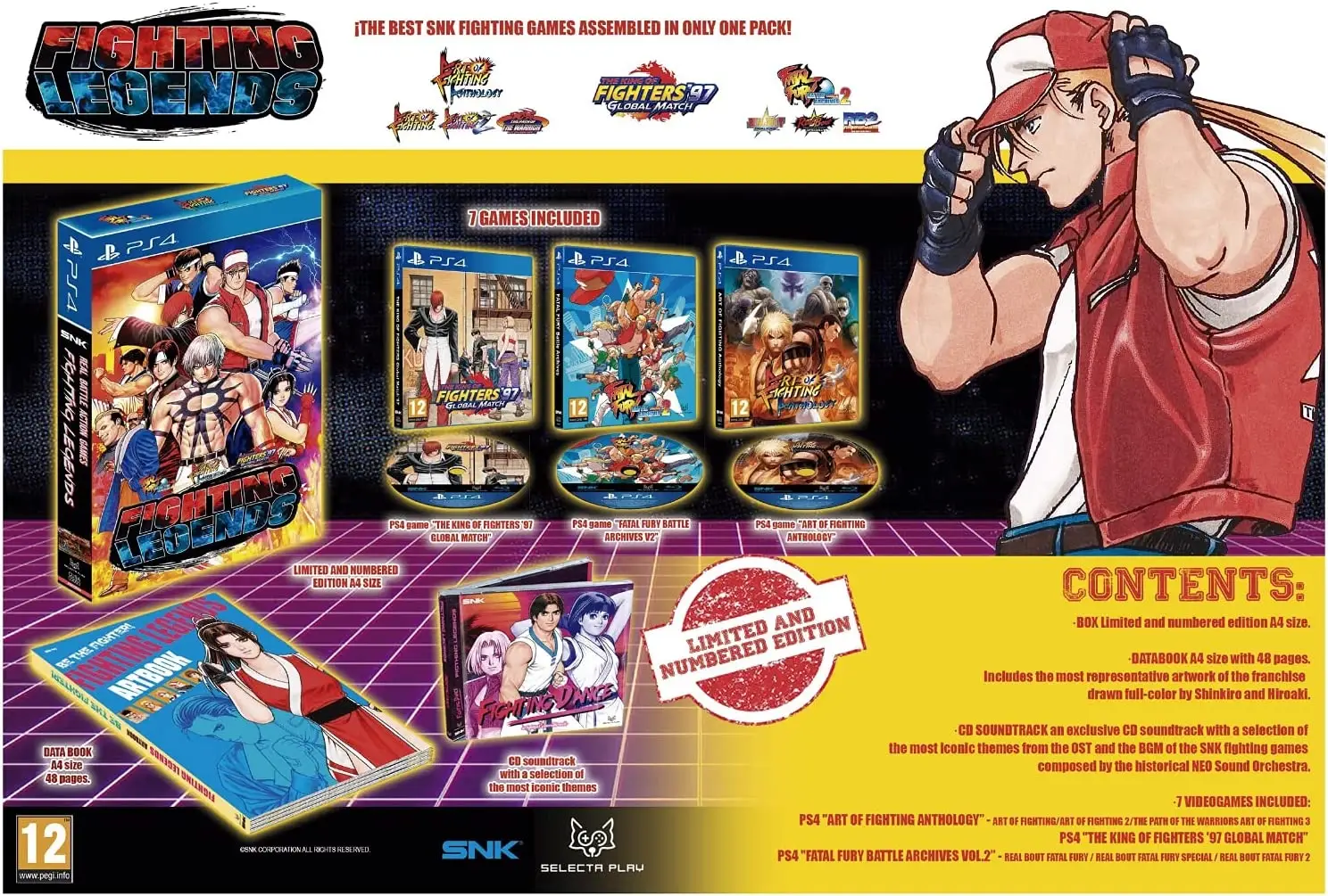 This collection includes the 7 most iconic fighting games from SNK, the company that revolutionized the industry in the 90's with their powerful Neo Geo and MVS that continue to be popular today. Its spectacular and addictive fighting games, full of super attacks and dangerous and colorful opponents, designed by Takashi Nishiyama and Hiroshi Matsumoto, also creators of Street Fighter, represented the pinnacle of 2D gaming systems and the turning point among retro games and contemporary.