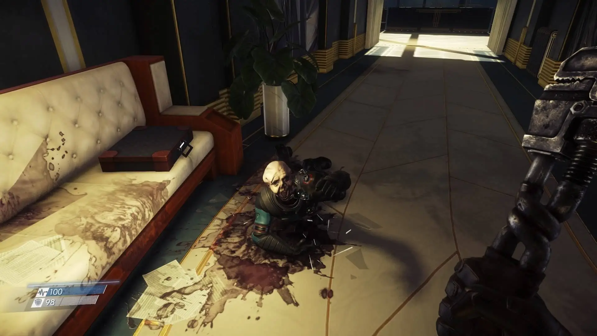In Prey, the player controls Morgan Yu while exploring the space station Talos I, in orbit around Earth–Moon L2, where research into a hostile alien collective called the Typhon is performed. As the Typhon escape confinement, the player uses a variety of weapons and abilities derived from the Typhon to avoid being killed by the aliens while looking to escape the station. The station is presented as an open world to the player, with progression through the world after obtaining key items or abilities similar in nature to a Metroidvania game.