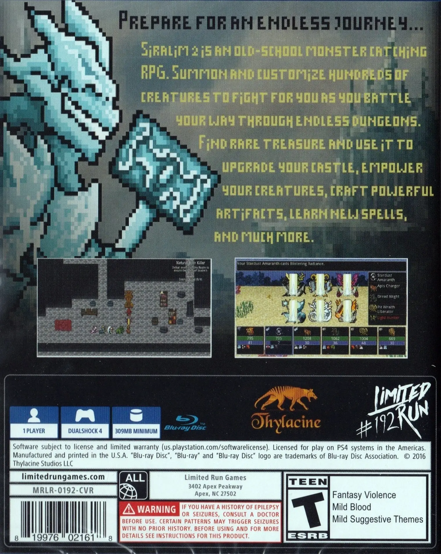Siralim 2 is an old-school monster catching RPG. Summon and customize hundreds of creatures to fight for you as you battle your way through endless dungeons. Find rare treasure and use it to upgrade your castle, empower your creatures, craft powerful artifacts, learn new spells, and much more.