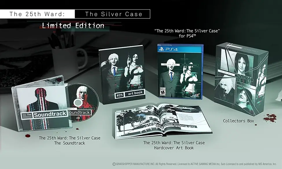 Envelop yourself in the world of The 25th Ward with the Limited Edition version. Featuring an alluring, dark soundtrack encapsulating all three Arcs of the title, a slick hardcover art book featuring the world built around “The Silver Case” and an excellent, display-quality box. Available for a limited time for PlayStation4.