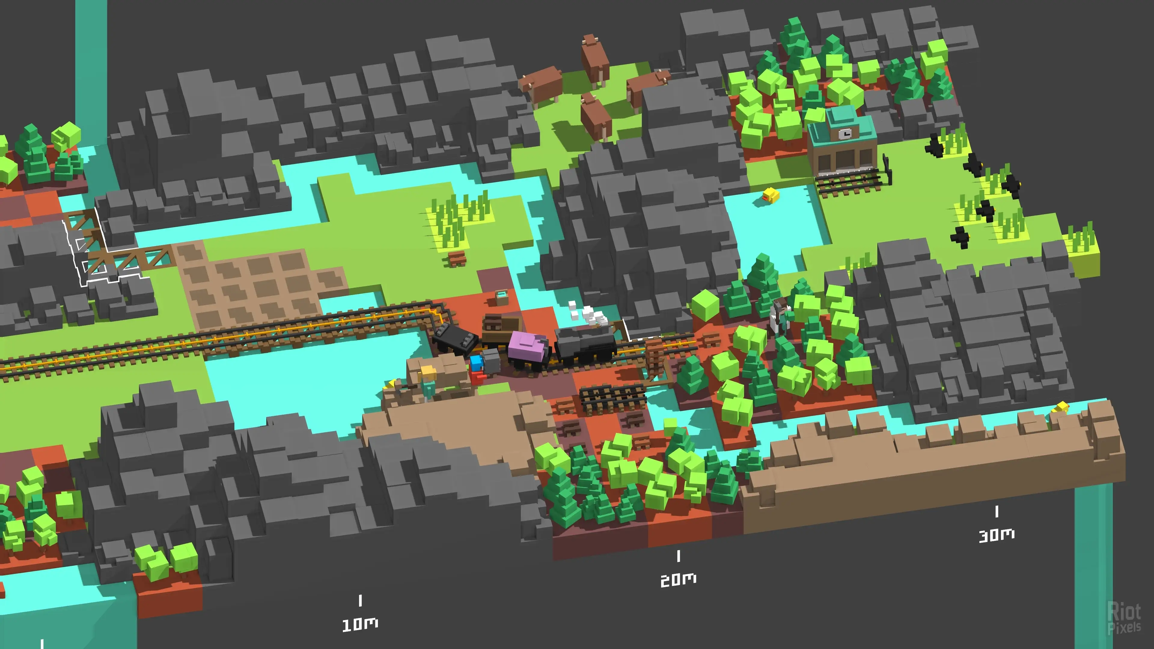 Unrailed! is a chaotic online and couch co-op multiplayer railroad construction game where you work together with your friends as a team to build a train track across endless procedurally generated worlds. Master encounters with its inhabitants, upgrade your train and keep it from derailing!