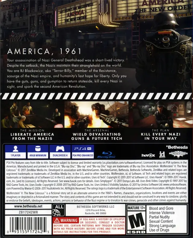 The Mission: Liberate America from the Nazis – Strap in for a heart-pounding journey as you fight the Nazi war machine on American soil. As BJ Blazkowicz, protect your family and friends, forge new alliances and face the demons of your troubled past as you rally pockets of resistance to overthrow the Nazi occupation.
