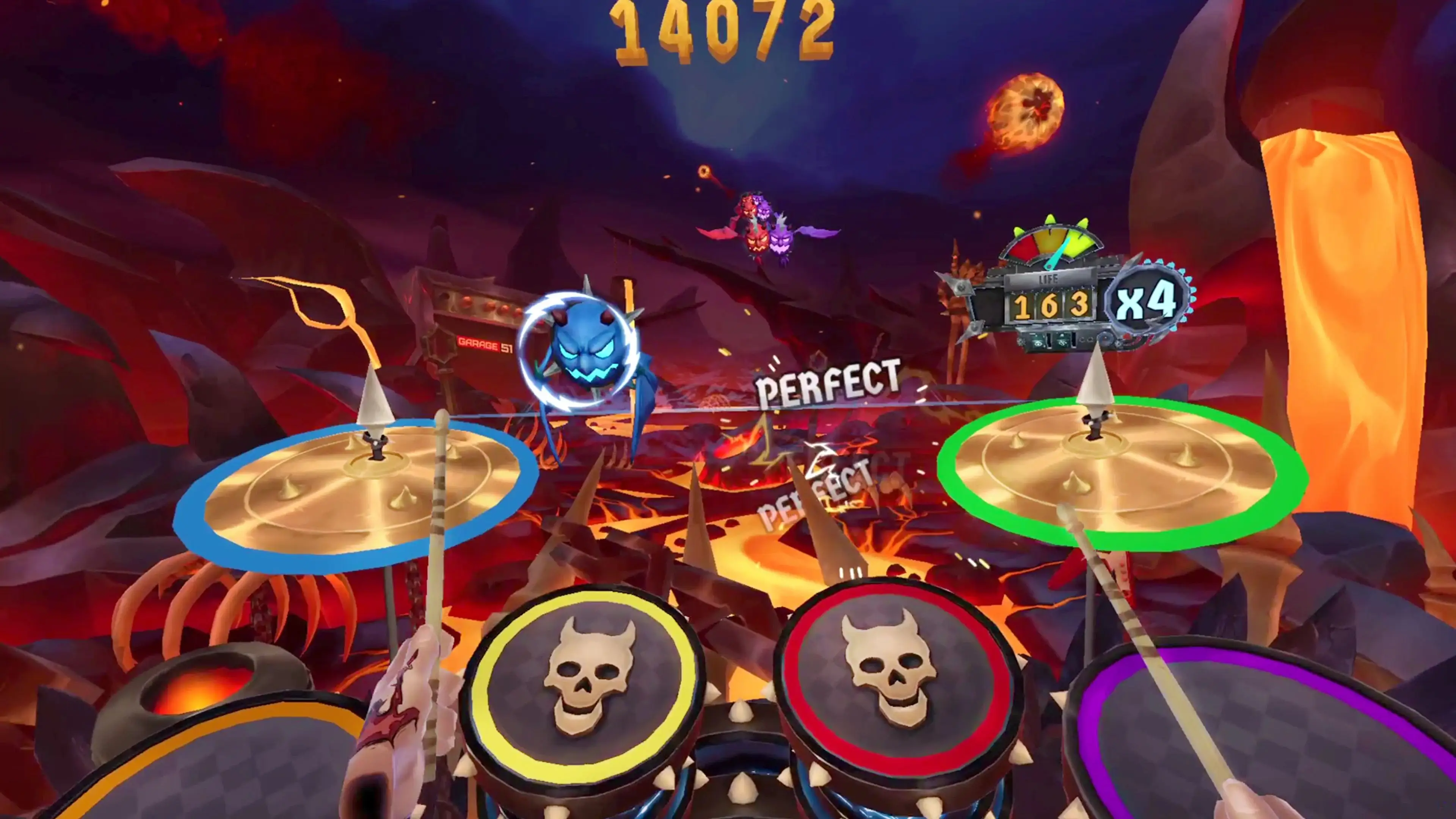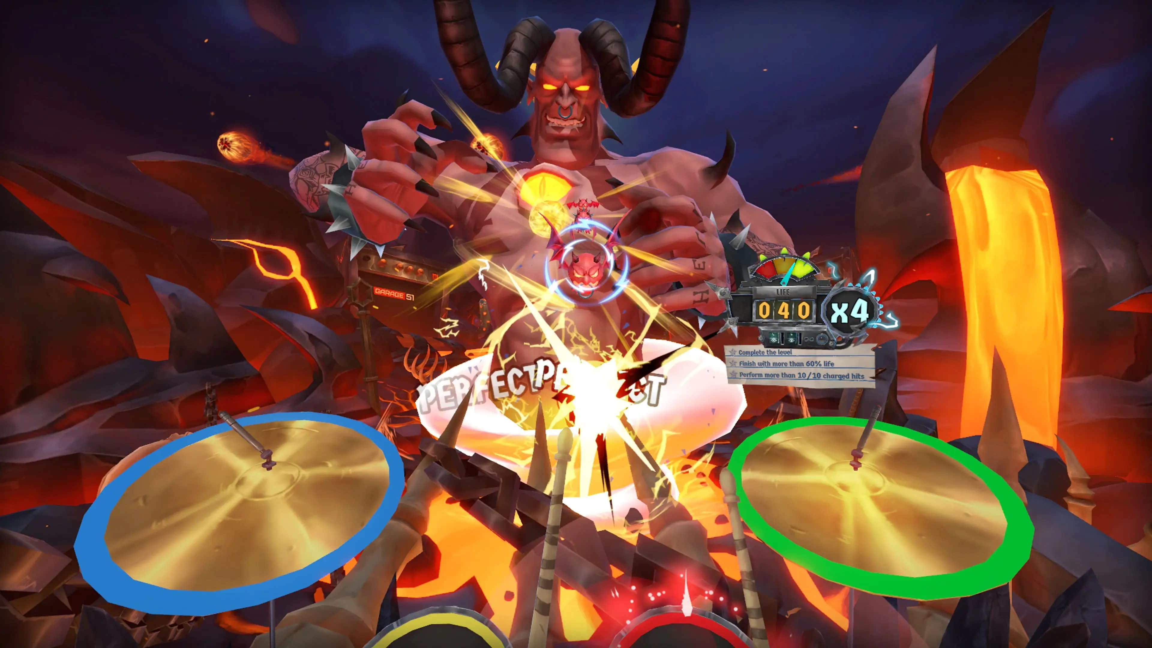 Play the drums like a rock hero, and survive in hell fighting against demons and their boss!