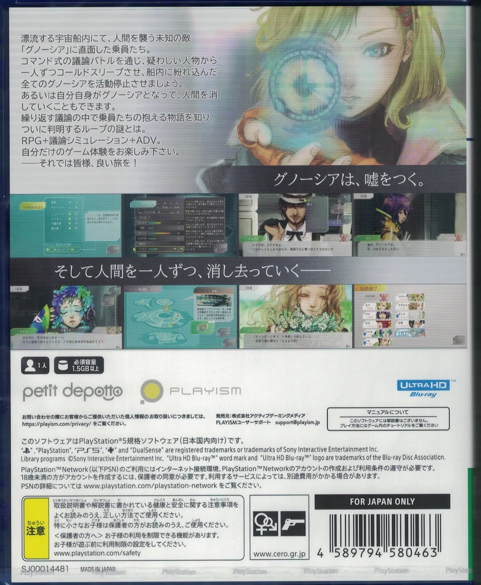As the number of crew members, Gnosia, and various “roles” increase, it will become increasingly difficult to determine who is telling the truth. Work in collaboration with or against other crew members to ensure your survival until the end.