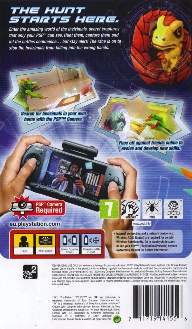 inviZimals turns your PSP system into a virtual creature hunter that lets you hunt and capture the monsters living in the world around you. Follow the clues as you track them around the world. After they’re captured, battle your inviZimals against your friends or train them to become stronger. You’ve never seen a game quite like this.
