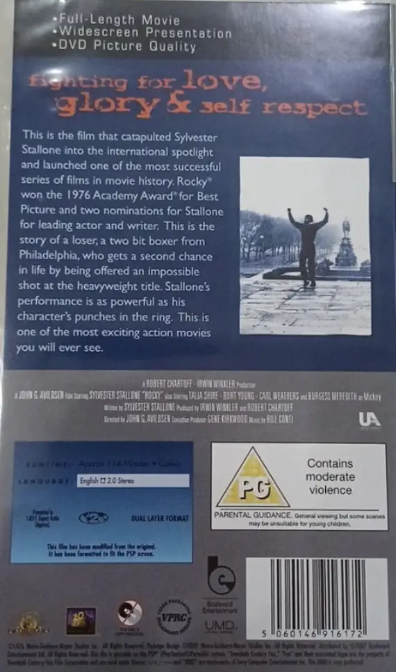 Rocky is a 1976 American sports drama film directed by John G. Avildsen and written by and starring Sylvester Stallone. It is the first installment in the Rocky franchise and also stars Talia Shire, Burt Young, Carl Weathers, and Burgess Meredith. In the film, Rocky Balboa (Stallone), a poor small-time club fighter and loanshark debt collector, gets an unlikely shot at the world heavyweight championship held by Apollo Creed (Weathers).