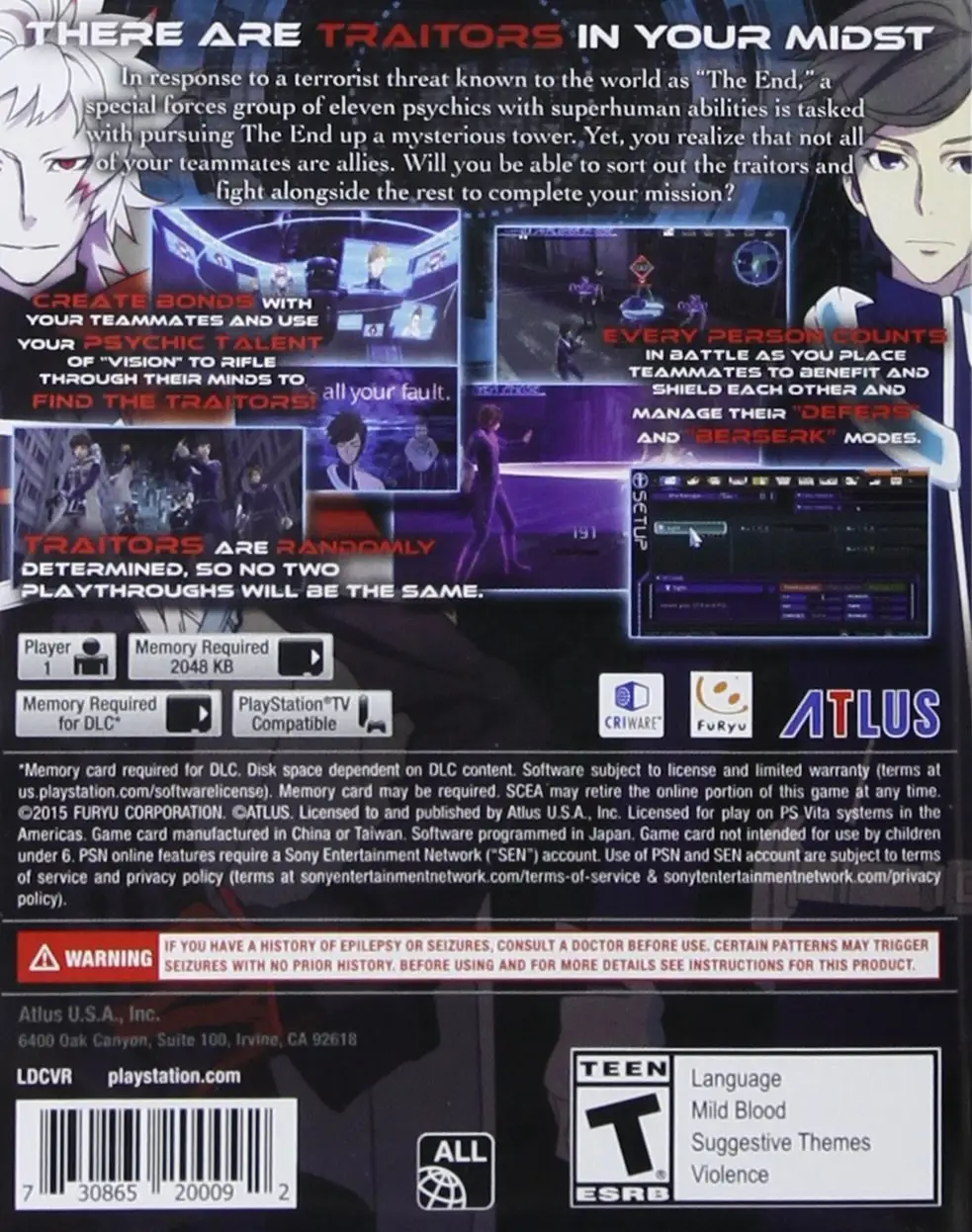 To subdue the threat The End poses to the entire planet, several countries create a special forces group called SEALED, which is comprised of eleven psychics with superhuman abilities. Each soldier has their own talents and skillsets to use in combat, which can be expanded after gaining enough experience in the field. Bonds of friendship will form amongst the members of SEALED, but be mindful of which allies to keep close, as The End mandates the player must begin eliminating teammates. Make sure to accuse the right teammate of being a traitor though, once the final battle with The End begins any remaining traitors will fight the main character alongside him.