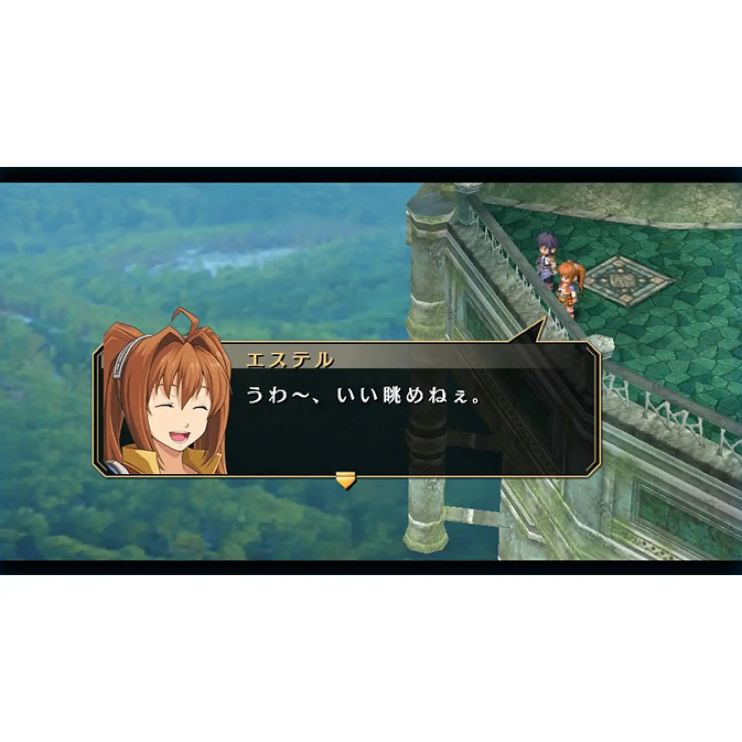 In the peaceful town of Rolent of the Liberl Kingdom, a young girl named Estelle and her friend Joshua, who had been taken in by her family years earlier, prepare to take their first steps to join the legendary guild of the Bracers. Bracers are considered the peacekeepers and protectors of order that owe allegiance to no country or government. In Liberl their guild has flourished since a brief war some ten years prior after an invasion from the Erebonian Empire to the north, and their efforts have made peace a lasting prospect.