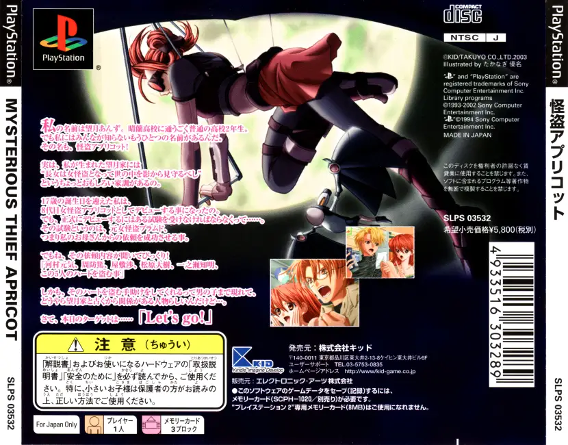 Mochizuki is a high-school student but she also got a secret identity as the Thief Apricot. The game begins with Mochizuki 17th birthday and that day she will finally gain the title of thief Apricot, but her mother told her that before she can use his family title of Kaitou Apricot she must pass some tests.