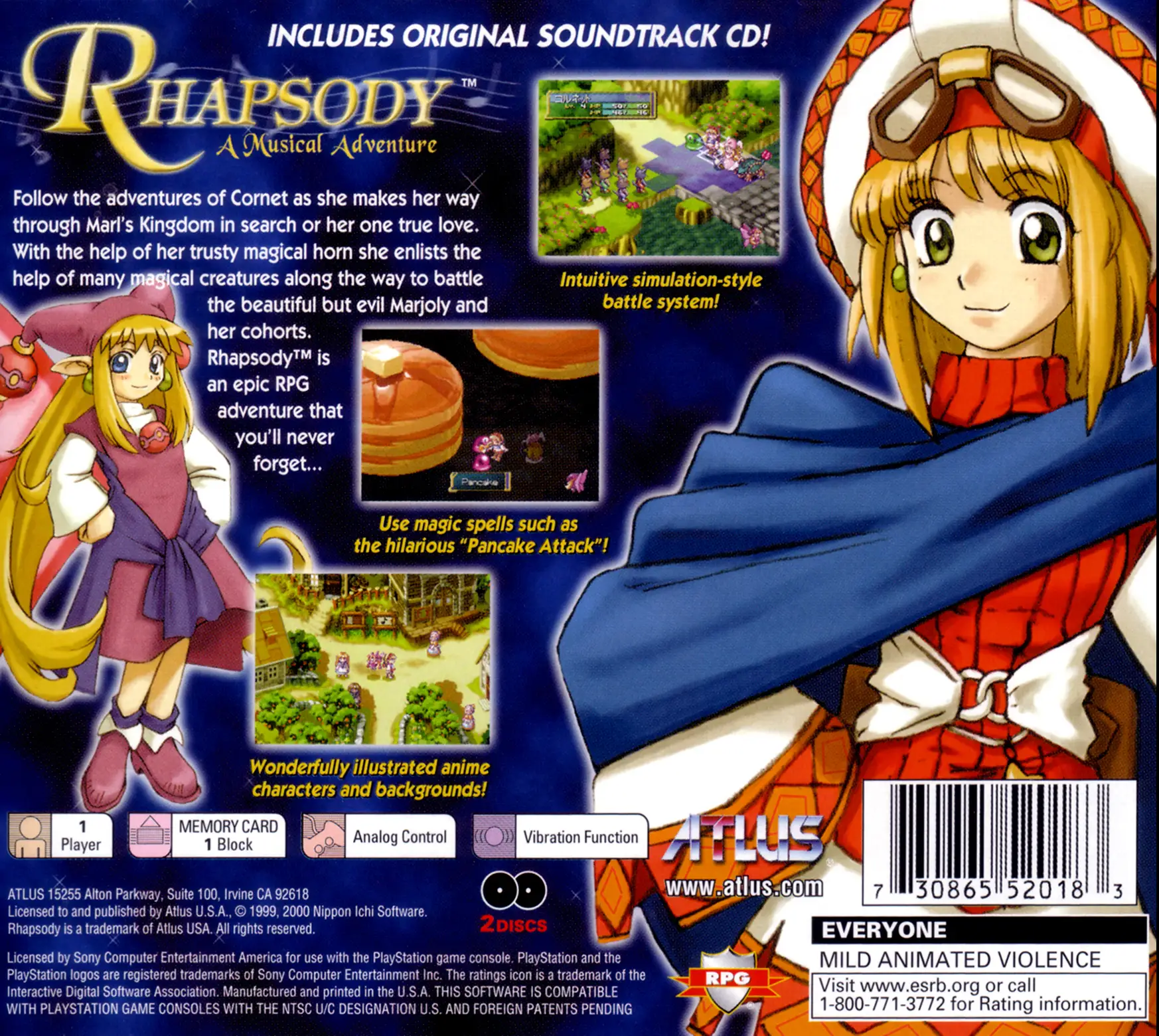 Follow the adventures of Cornet as she makes her way through Marl's Kingdom in search or her one true love. With the help of her trusty magical horn she enlists the help of many magical creatures along the way to battle the beautiful but evil Marjoly and her cohorts. Rhapsody is an epic RPG adventure that you'll never forget…