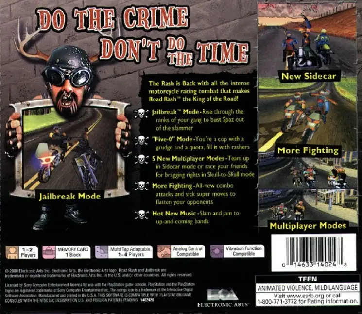 The Road Rash series continues with an all new chapter of intense motorcycle combat and racing action. In Road Rash: Jail Break it’s up to you to bust the toughest rasher of all time, Spaz, out of jail! To accomplish this, you’ll have to join a motorcycle gang and move up through the ranks by succeeding at a variety of challenges and winning races.