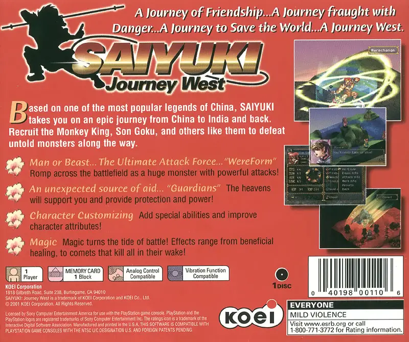 A Journey of Friendship…A Journey fraught with Danger…A Journey to Save the World…A Journey West. Based on one of the most popular legends of China, Saiyuki takes you on an epic journey from China to India and back. Recruit the Monkey King, Son Goku, and others like them to defeat untold monsters along the way.