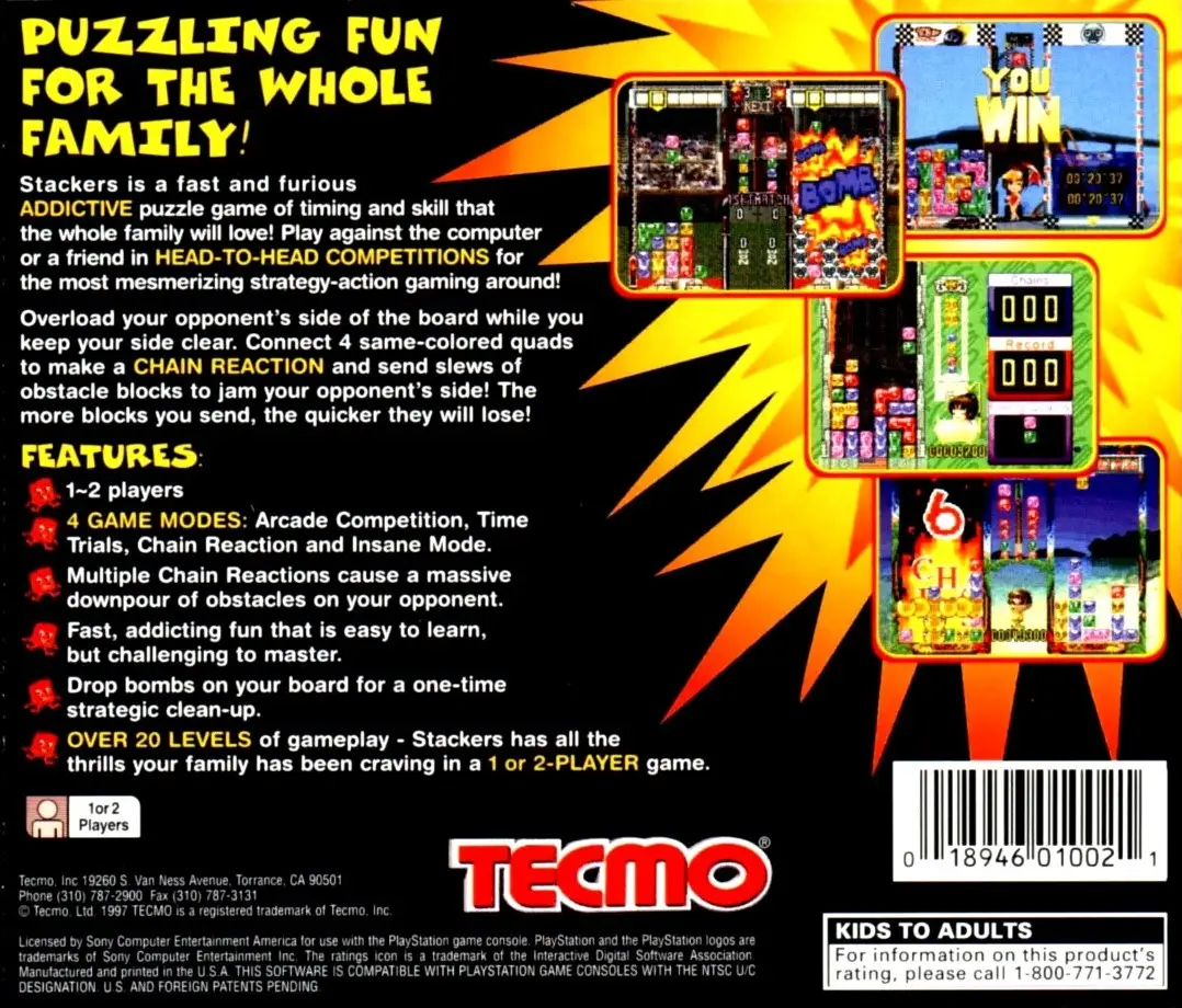 If you connect four quads (blocks) of the same color, you’ll create a chain reaction that will really give you an advantage. If you find yourself in a pinch, utilize a bomb to temporarily clear your board. There are four gameplay modes to choose from Arcade Competition, Time Trials, Chain Reaction, and Insane and more than 20 levels to master, making TEMCO STACKERS one of the most complete action or puzzle games available.