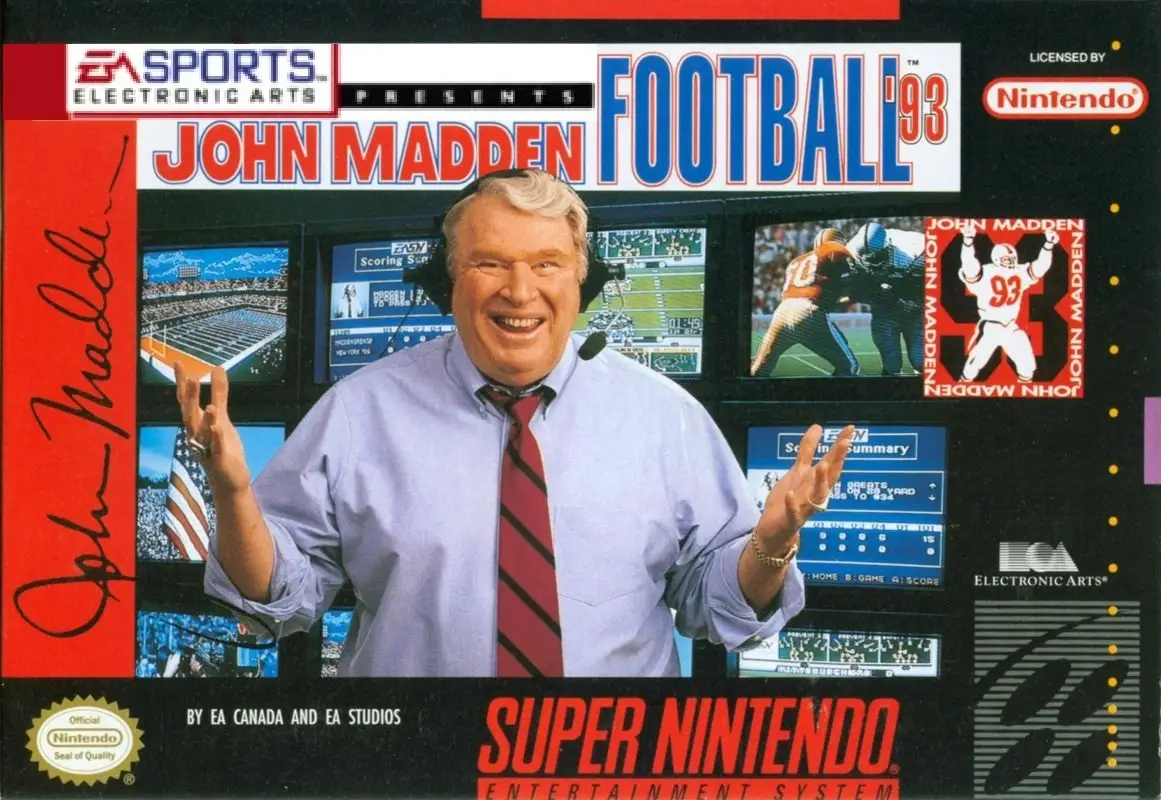 John Madden Football '93 is a 1992 sports video game developed by Blue Sky Productions and Electronic Arts and published by EA Sports Network. Based on the sport of American football, the game puts the player in control of a football team in modes such as tournament play and sudden death. It was officially endorsed by John Madden.