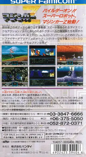 Dr. Hell’s robot army has destroyed Tokyo, and now only Kouji Kabuto, and the giant robot Mazinger Z, can stop them from taking over the entire world. Animated cutscenes between levels tell the story of the game.