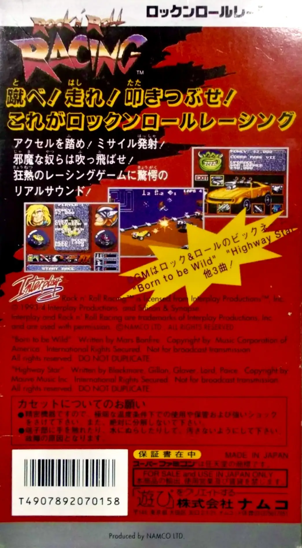 Rock n' Roll Racing is a vehicular combat-based racing video game developed by Silicon & Synapse (now known as Blizzard Entertainment) and published by Interplay Productions for the Super Nintendo Entertainment System in 1993 and the Mega Drive/Genesis in 1994. The game prominently features a number of popular heavy metal and rock songs in its soundtrack, hence the game's title. The game was ported to the Game Boy Advance in 2003. In celebration of the company's 30th anniversary, Rock n' Roll Racing was re-released for Microsoft Windows, Nintendo Switch, PlayStation 4 and Xbox One as part of the Blizzard Arcade Collection in February 2021.