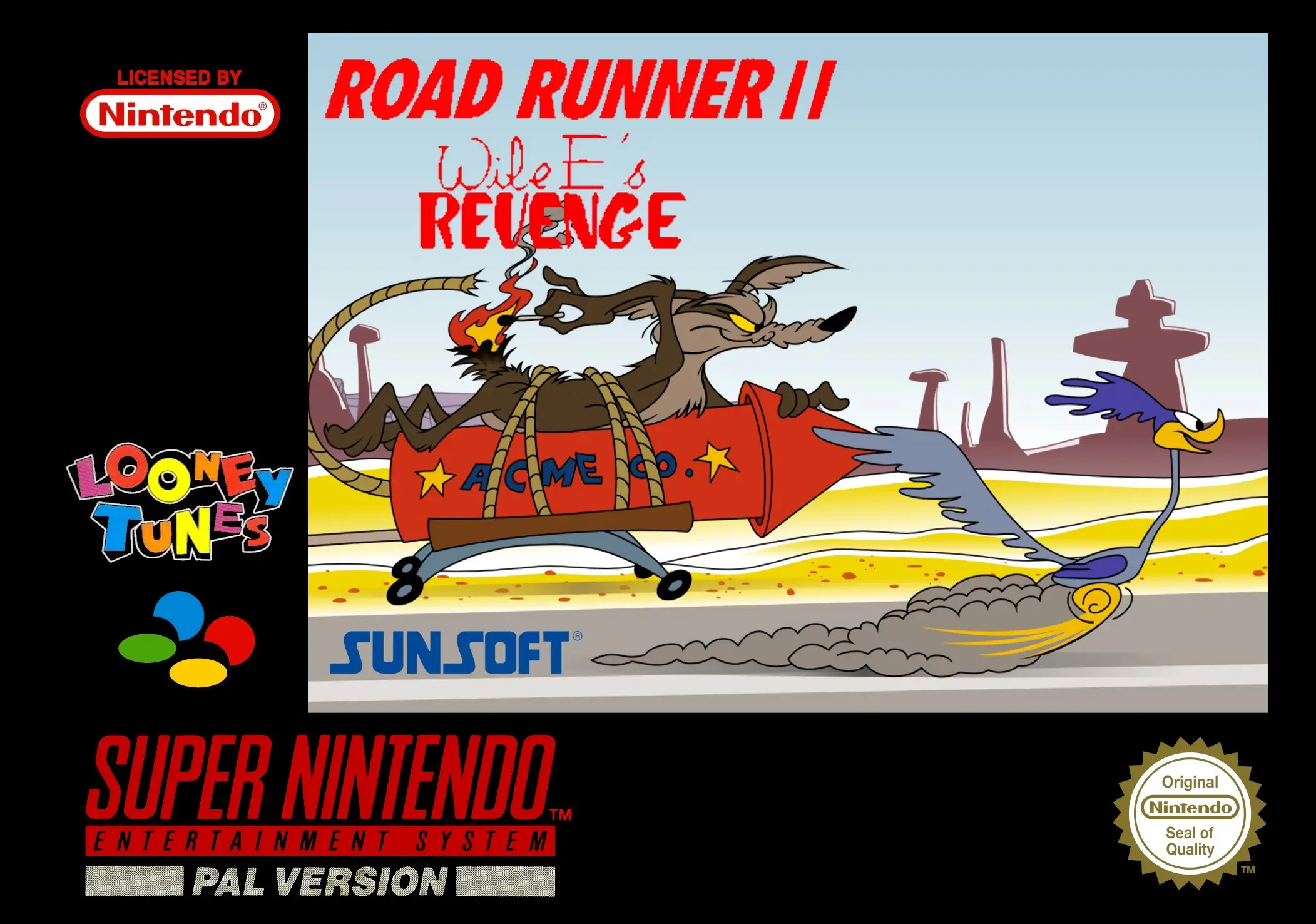Wile E's Revenge was the sequel to Road Runner's Death Valley Rally. In this game, you took the role of Wile E Coyote, and chased the Road Runner through various locations in the United States. According to Rene Boutin, the producer of the game at Sunsoft of America, the game was about half done before being canceled.