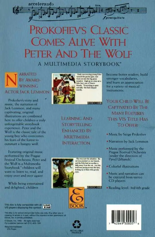 Prokofiev's story and music, the narration of Jack Lemmon, and many captivating original illustrations are combined here to offer children a truly unforgettable storybook experience. Peter and the Wolf is the classic tale of the young boy who overcomes his fears of the forest to outsmart a hungry wolf.